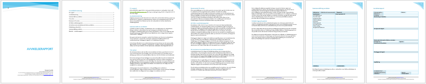 Mallen innehåller en anpassningsbar avvikelserapport samt vägledning för hela processen – från rapportering till uppföljning och förbättringsarbete.