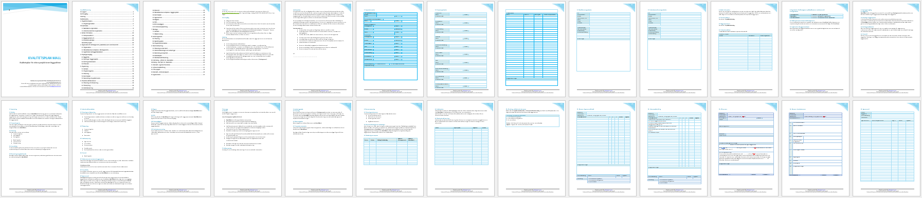 Det här är samma mallar som vi på Kvalitetsgruppen sedan 1997 har använt som utgångspunkt i hundratals kundprojekt. De har hjälpt små och medelstora byggföretag att uppfylla lagkrav, samordna arbetsmiljöarbetet och klara revisioner och certifieringar enligt ISO 9001, 14001 och 45001.